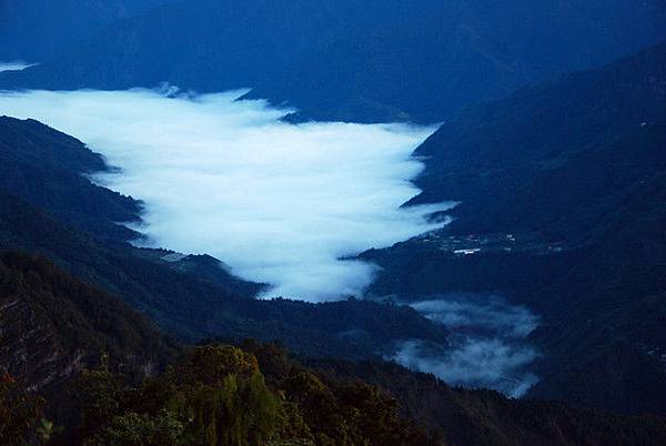 眼前的玉山山塊氤氳縹緲煙霧繚繞,底下的台 21 線 109K 處則像倒了牛奶漫著濃密的雲霧