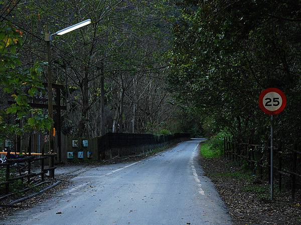 早晨時分的省道路上算是空空蕩蕩,兩三輛車、路人與一隻黑狗而已