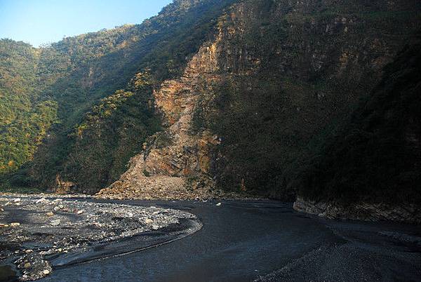 陽光突破群山高度限制下開始照耀在昨天下午轉入台 16 線經過的那些背陽面角落處