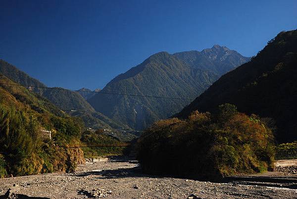 幾乎沒發動引擎溜回鄉道起點的和社橋,隔著溪水拍了一張回家才知道是八通關山的照片