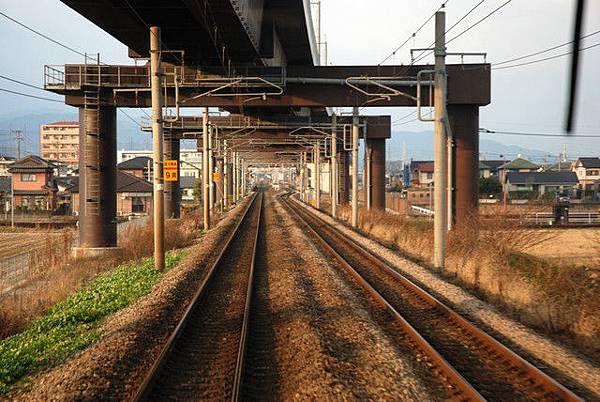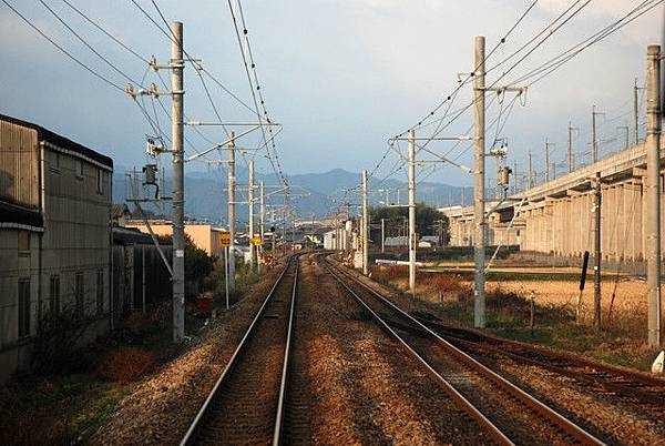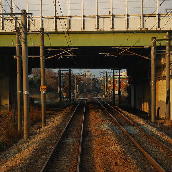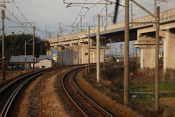 愈接近市區的地段就愈有趣味的看著鐵道與其他路線並行交會