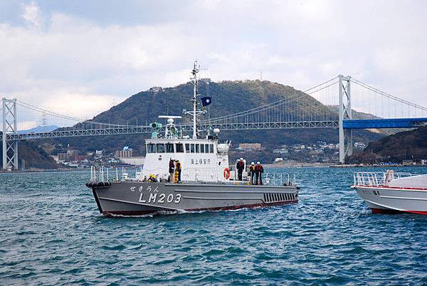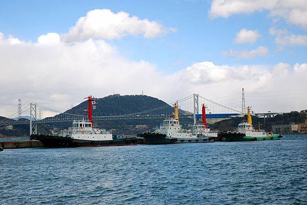 不過飽和度過濃的湛藍海面以及連接本州與九州的關門橋為背景的特色鮮明海港邊視野