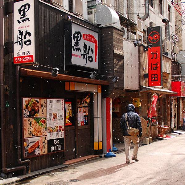 差點都忘了氣溫偏低的日本夜裡正開始飄起雪來,還有身旁因為太冷過敏戴著口罩的老傅