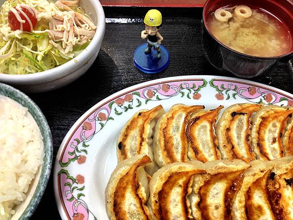 一客煎餃的份量竟然用大型托盤呈了上來,生菜外加味增湯的常見組合是嚇不倒我滴